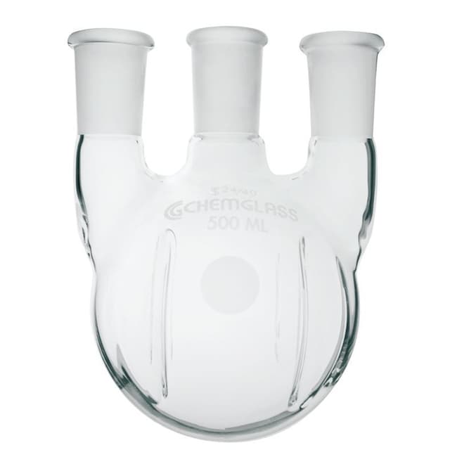 Chemglass Life Sciences Flask, Round Bottom, 500mL, Heavy Wall, 3-Neck, 45/50 CN - 29/42 SNs, Vertical