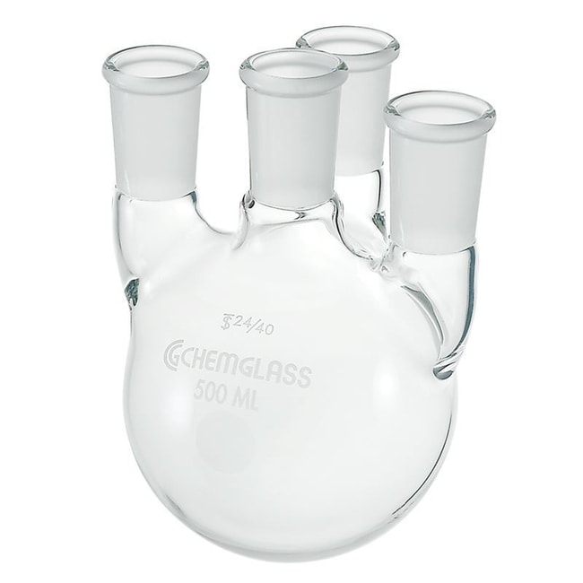 Chemglass Life Sciences Flask, Round Bottom, 5000mL, Heavy Wall, Vertical 4-Neck, 29/42 CN, 24/40 SN's