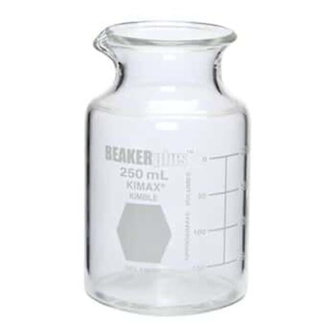 Kimax BeakerPlus™ Combination Beaker and Flask is ideal for mixing and for use with funnels or filters. The unique design features a wide fluted rim with pour spout and narrow recessed neck to reduce splashing during agitation. Manufactured with borosilicate glass, these beaker/flasks offer excellent chemical and heat resistance.