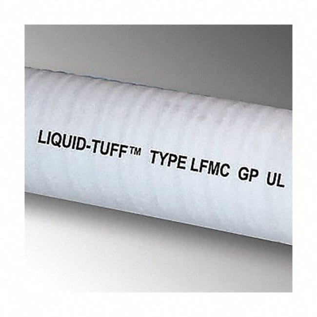 The AFC Liquid Tight Flex Metal Conduit is a flexible metal conduit with a liquid tight PVC jacket. It is made of galvanized steel and has an operating temperature range of -20°F to 167°F. The conduit has a 3/4" trade size, is sold by the foot, and is UL and CSA listed. It can be used to protect and route electrical wiring in damp, wet location applications both indoors and outdoors. The conduit is sunlight, oil, and chemical resistant. It meets NEC article 350 requirements and is designed for use with flexible metal conduit fittings.