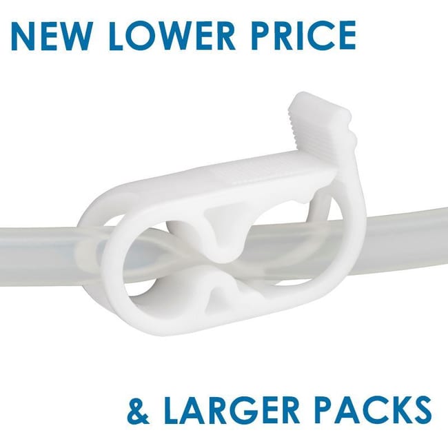 Acetal clamp is autoclavable; won't rust, corrode or distort.Clamp accepts up to 0. 45" OD tubing and features twelve-position ratchet control to adjust flow from fully-open to complete-closure.