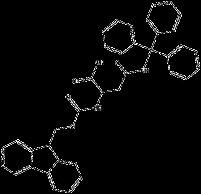 Fmoc-Asn Trt -OH (CAS 132388-59-1) is an amino acid derivative used as a biochemical reagent in peptide synthesis It is designed for Fmoc-based solid-phase peptide synthesis incorporating an N-terminal Fmoc protecting group and a side-chain trityl (Trt) group on asparagine to ensure selective protection and facilitate peptide assembly Researchers employ Fmoc-Asn Trt -OH extensively for synthesizing peptides or protein fragments to enable structural studies functional assays mechanistic investigations of biological processes and preliminary pharmaceutical research
