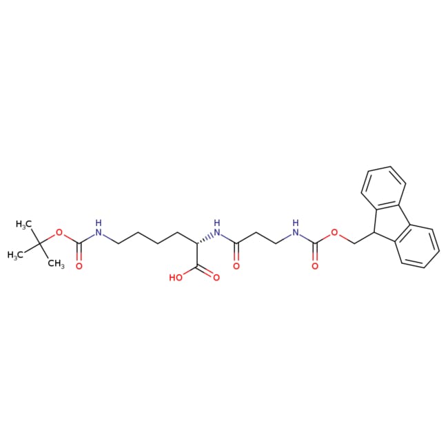 WuXi TIDES Fmoc-L-beta-Ala-Lys(Boc)-OH, 1998700-95-0 | N2-(3-((((9H-fluoren-9-yl)methoxy)carbonyl)amino)propanoyl)-N6-(tert-butoxycarbonyl)-L-lysine | CC(C)(C)OC(=O)NCCCC[C@H](NC(=O)CCNC(=O)OCC1C2=C(C=CC=C2)C3=C1C=CC=C3)C(=O)O | M.F. C29H37N3O7, M.W. 539.63