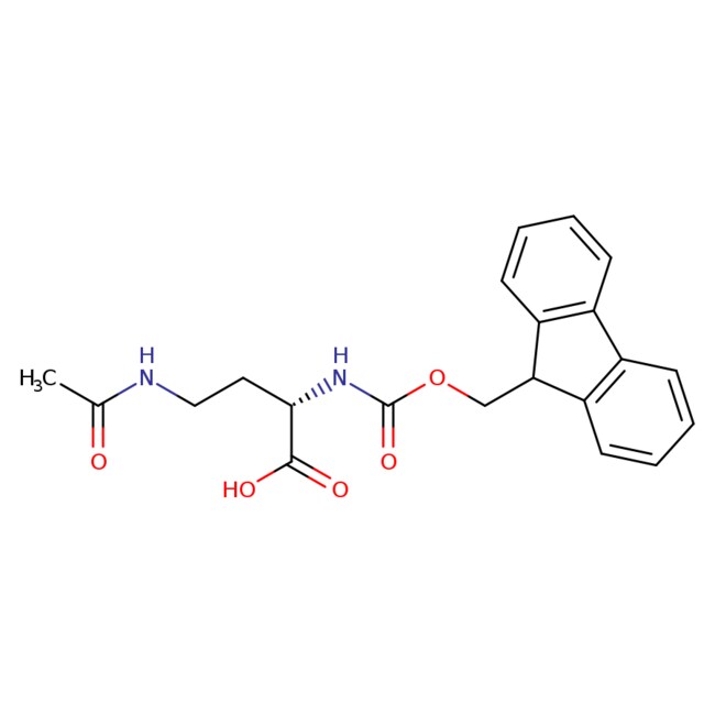 WuXi TIDES Fmoc-L-Dab(Ac)-OH, 1220955-83-8 | (S)-2-((((9H-fluoren-9-yl)methoxy)carbonyl)amino)-4-acetamidobutanoic acid | CC(=O)NCC[C@@H](C(=O)O)NC(=O)OCC1C2=C(C=CC=C2)C3=C1C=CC=C3 | M.F. C21H22N2O5, M.W. 382.42
