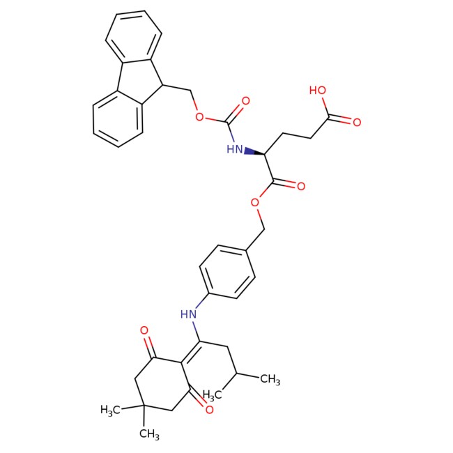- IUPAC: (S)-4-((((9H-fluoren-9-yl)methoxy)carbonyl)amino)-5-((4-((1-(4,4-dimethyl-2,6-dioxocyclohexylidene)-3-methylbutyl)amino)benzyl)oxy)-5-oxopentanoic acid