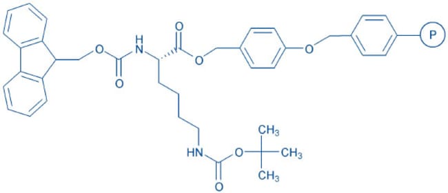 Fmoc-Lys(Boc)-Wang resin (100-200 mesh, 0.5-0.8 mmol/g), Fmoc-Lys(Boc)-4-alkoxybenzyl alcohol resin, 5g. Fmoc-Lys(Boc)-p-alkoxybenzyl alcohol resin.