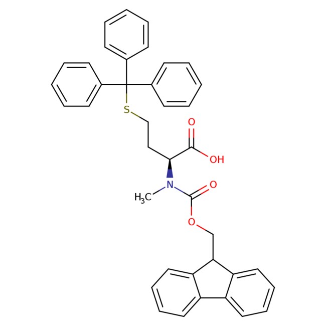 - IUPAC: N-(((9H-fluoren-9-yl)methoxy)carbonyl)-N-methyl-S-trityl-L-homocysteine