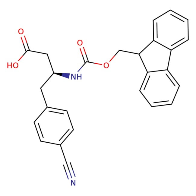 WuXi TIDES Fmoc-(S)-3-Amino-4-(4-cyano-phenyl)-butyric acid, 270065-90-2 | (S)-3-((((9H-fluoren-9-yl)methoxy)carbonyl)amino)-4-(4-cyanophenyl)butanoic acid | N#CC=1C=CC(=CC1)C[C@@H](CC(O)=O)NC(OCC2C3=CC=CC=C3C4=CC=CC=C42)=O | M.F. C26H22N2O4, M.W. 426.47