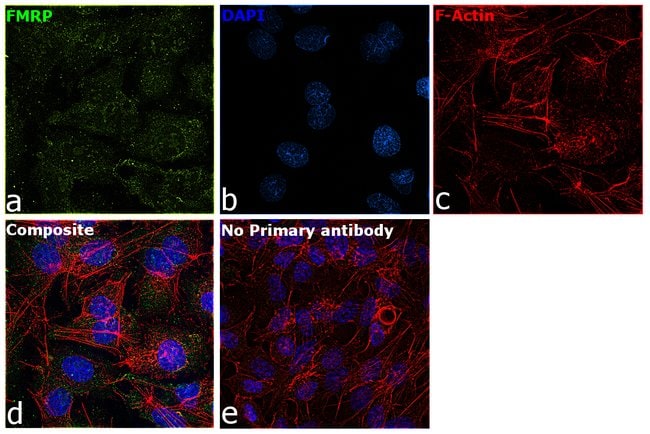| Synthetic peptide sequence (RTGKDRNQKKEKPD) corresponding to the internal amino acids of FMR1 (aa 606-620). | |