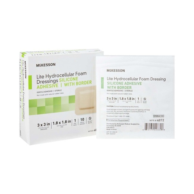 Med Vet International McKesson Lite Silicone Gel Adhesive with Border Thin Silicone Foam Dressing 3 x 3 Inch 4872 Each