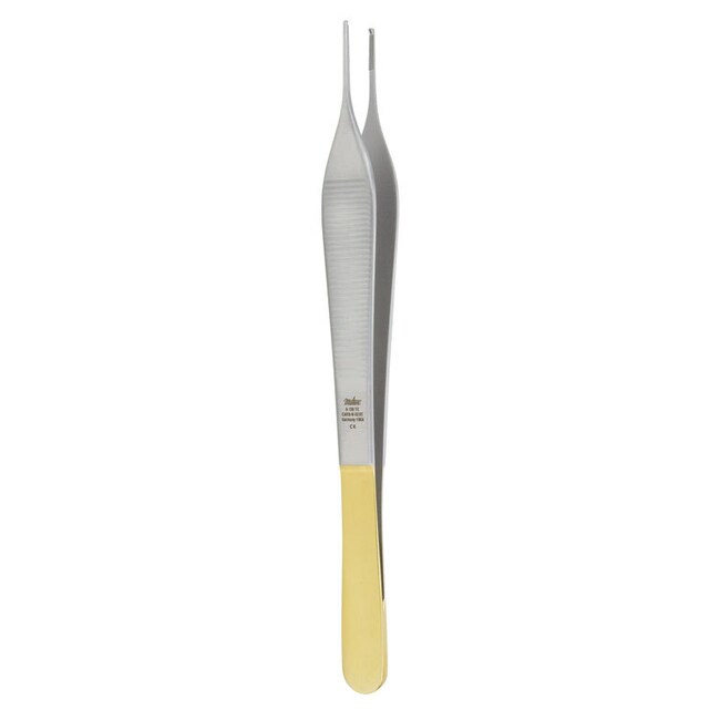 Med Vet International Miltex Adson Tissue Forceps, 6in, Delicate 1 X 2 Teeth, Cross Serrated Tying Platform, Carb-N-Sert, Tungsten Carbide, German, 6-130Tc