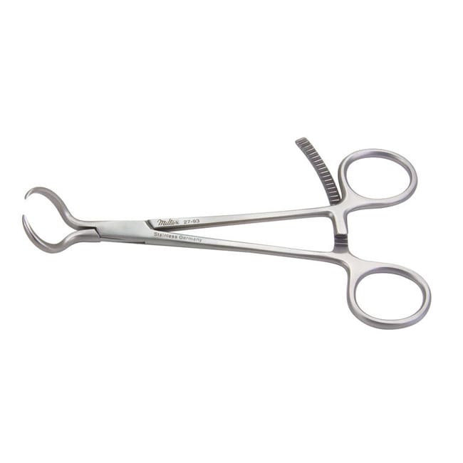 The Miltex name is synonymous with unparalleled quality and service to customers and surgical instrumentation produced with the utmost attention to consistent detail. The Miltex instruments includes both premium-grade German and American crafted stainless steel surgical instrumentation manufactured to exacting specifications. The surgical “feel” of these instruments, the outstanding cutting ability and the attention to delicate detail are just a few of the aspects that allow Miltex to outperform and stand out from the competition. These are Miltex Bone Reduction Forceps. Bone Reduction Forceps are crafted for use in orthopedic surgeries. They are made from premium-grade German stainless steel. Specifications: 6in, Curved, With Ratchet, 27-93