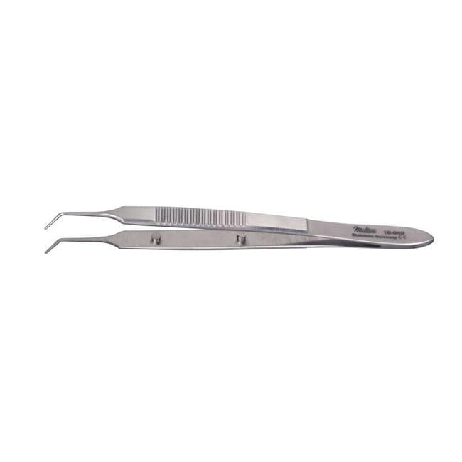 Med Vet International Miltex Mcpherson Iris Suturing Forceps, 3.5in, Angled, Tying Platform, 0.3mm Wide At Tip, German, 18-949