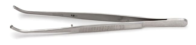 Tissue forceps with 1x2 teeth have one tooth on one tip and two teeth on the other tip of the tweezers. These tweezers have a fine tip for delicate tissue manipulation, such as during ophthalmic surgery or plastic surgery. Laboratory researchers choose these tissue forceps for precision work and microdissection. The teeth ensure a firm grasp of the tissue, which is ideal for slippery or hard to hold tissues. While tweezers with teeth run the risk of puncturing delicate tissue, the 1x2 configuration causes less tissue trauma than surgical tweezers with more teeth. These are available with curved or straight tips. The curved tips offer greater visibility of the operating area. They are 12.5cm (5") long and fit easily into your hand for precision work.