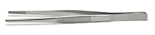 Dressing Forceps, also known as thumb forceps or pickups, are surgical instruments characterized by their long, thin handles and serrated tips. They are typically used when dressing wounds where they hold gauze and other dressings. They may also be used during wound debridement to remove infected or necrotic tissue or debris from the wound. They may be used for suturing when needle holders are not accessible. Dressing forceps are designed to grip delicate tissue without causing damage, and they are often used in situations where precision and control are important. These dressing forceps have straight blades and rounded (blunt) tips. They are available in various sizes: 12.5 cm (5"), 15.5 cm (6.1"), 25.5cm (10"), or 30.5 (12") long.