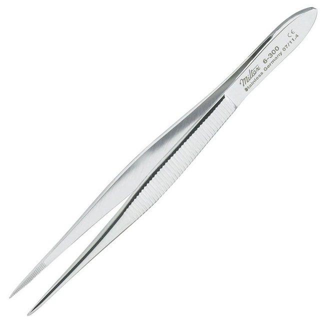 The Miltex Vantage V96-300 Splinter Forceps are made of mid-grade surgical steel and have a length of 3.5in. Splinter Forceps are a fine-tipped forceps, used in first aid, to remove tiny foreign bodies from tissues, and may be used to handle sutures.