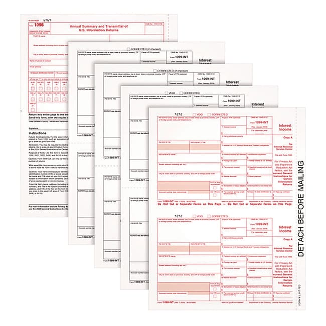 Essendant Adams 4-Part 1099-INT Tax Forms with Tax Forms Helper Fiscal Year- 2024 4-Part Carbonless 8x5 5 2 Forms/Sheet 24 Forms Total