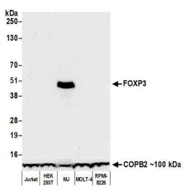 FoxP3 Monoclonal antibody specifically detects FoxP3 in Human samples. It is validated for Western Blot, Immunohistochemistry, Immunofluorescence, Immunoprecipitation, Immunohistochemistry (Paraffin), Multiplex ImmunoassaySpecifications