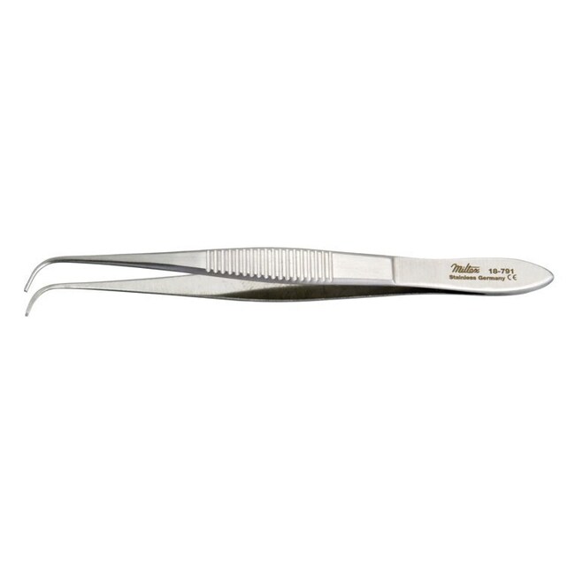 Miltex Iris Tissue Forceps 3 75in Delicate Full Curved 1 X 2 Teeth 0 6mm Wide At Tip German 18-791