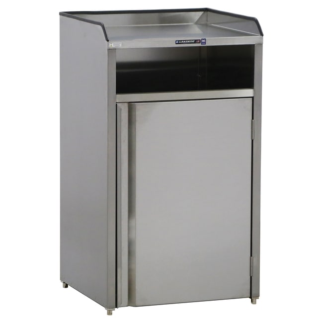 Waste and recycling stations combine attractive functionality with the durability of stainless steel. The Lakeside 4310 Front Access Waste and Recycling Station is made of stainless steel, with (1) compartment, and has a 35 gallon capacity. This unit has a durable stainless steel construction for easy-to-clean applications. The cabinets include a stainless steel floor to protect carpeted facilities. Liquid/Cup Refuse units include 7-gal. sealed receptacle to prevent spills. The liquid/Cup Refuse units include a recessed drainage sink to minimize dripping and spillage as waste beverages are poured out. This model has leveling feet that provide easy floor leveling. Nobody beats Lakeside’s lead times. Made in the USA.