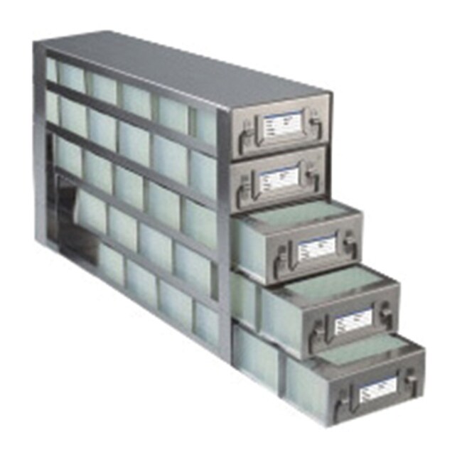 These upright freezer drawer racks provide quick storage and retrieval of plates and microtube boxes. hey are crafted of corrosion-resistent stainless steel for durablity.
