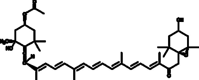A carotenoid that occurs naturally in certain algae; significantly reduces abdominal white adipose tissue (WAT) in mice and rats when included in their diet; increases the amount of UCP1 protein in WAT; decreases blood glucose and plasma insulin levels in diabetic mice