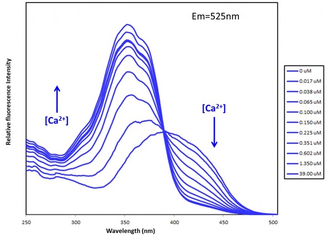 In contrast to single-wavelength indicators such as Fluo-4 the absorption or fluorescence excitation maximum of Fura indicators shifts from 380 nm Fura-2 415 nm Fura-8 and Fura-10 for the Ca2-free chelator to about 340 nm Fura-2 355 nm Fura-8 and Fura-10 for the Ca2-bound . This catalog is for 5x50 ug.