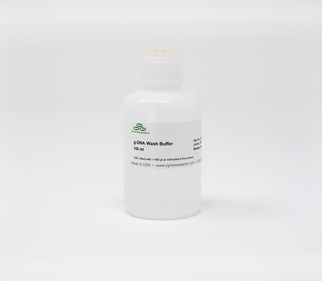 g-DNA Wash Buffer (100 ml). Sold separately or as part of a nucleic acid purification kit from Zymo Research.
