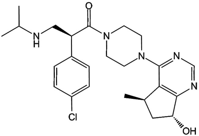 GDC-0068 (RG7440 CAS number 1001264-89-6) is a selective small-molecule inhibitor targeting Akt isoforms Akt1 Akt2 and Akt3 It inhibits Akt activity with IC50 values of 5 nM 18 nM and 8 nM for Akt1 Akt2 and Akt3 respectively Akt signaling within the PI3K-Akt pathway regulates cellular proliferation survival and tumorigenesis and is frequently dysregulated in cancers harboring mutations in PTEN or PI3K GDC-0068 binds to and inhibits Akt activation resulting in reduced tumor cell proliferation cell-cycle arrest and induction of apoptosis supporting its utility in oncology research