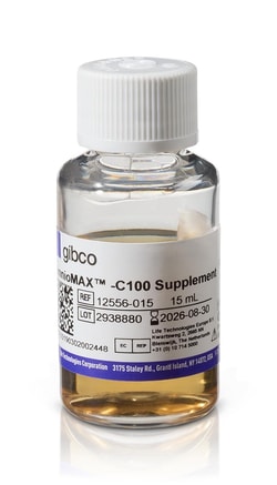Easy-to-use format: Gibco AmnioMAX C-100 Complete Medium is a two-part kit for preparation of a complete medium that requires no additional supplementation. The complete medium can be stored at 2-8°C for up to ten days