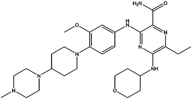 Gilteritinib (CAS 1254053-43-4) also known as ASP2215 is a pyrazinecarboxamide derivative that functions as a selective inhibitor of FLT3 tyrosine kinase By targeting FLT3 gilteritinib disrupts aberrant signaling pathways associated with FLT3 mutations in hematologic malignancies while demonstrating minimal inhibition of c-Kit to reduce myelosuppressive effects observed with other FLT3 inhibitors Developed by Astellas Pharma gilteritinib is utilized in research focusing on FLT3-mutated acute myeloid leukemia and mechanisms of targeted kinase inhibition