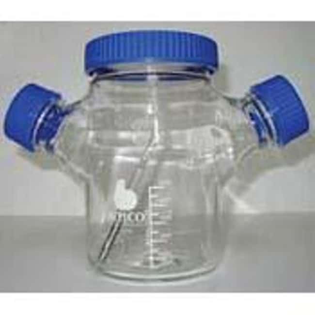 Bellco Glass, Inc. Manufactured from type 1 class a Borosilicate glass. Glass ball houses a magnet for gentle agitation of micro-carrier beads. Specially formed bottom indent prevents accumulation under the impeller. Sizes: 250ml Center cap size: 70mm Sidearm si