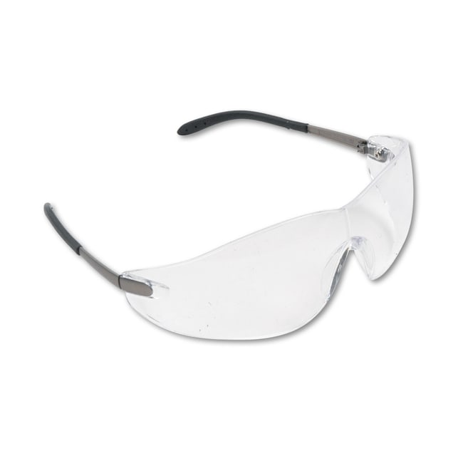 You won t have to sacrifice style for safety with these glasses The single wraparound lens comes with integral side shields with a sleek style and extra protection Lenses are treated with Duramass scratch-resistant coating and capable of resisting 99 9pct of UV rays Bayonet temple and nonslip rubber head grips offer a comfortable fitgreat for those long hours Safety Glasses Style- Wraparound Frame Color- Chrome Frame Material- Plastic Lens Material- Polycarbonate
