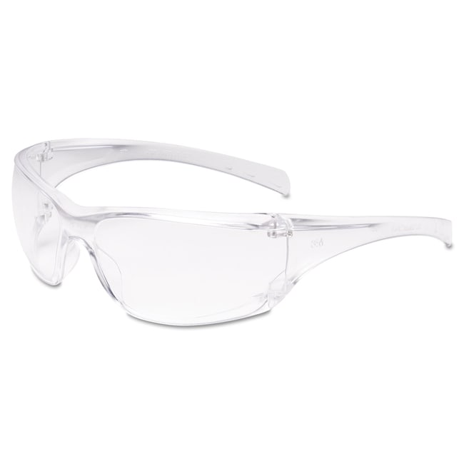 An economy safety glass that offers style protection and affordability Providing a wide viewing area the wraparound design combines with the integrated side shields to keep eyes more fully protected Contoured temples fit comfortably and snugly without pressure points but also without any looseness that causes shifting The impact-resistant polycarbonate lens absorbs 99 9pct UV rays Recommended for use during chipping chiseling drilling grinding machining masonry pouring/casting power fastening riveting sanding and sawing Safety Glasses Style- Frameless Frame Color- Clear Frame Material- Polycarbonate Lens Material- Polycarbonate