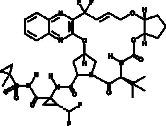 An HCV NS3/4A protease inhibitor; inhibits NS3/4A from HCV genotypes 1a, 1b, 2a, 2b, 3a, 4a, 5a, and 6a (IC50s = 4.6, 8.9, 3.5, 3.8, 7.9, 6.1, 8.1, and 11.3 nM) in cell-free assays but does not inhibit human chymase, chymotrypsin type II, chymotrypsin type VII, elastase, kallikrein, urokinase, or cathepsin B proteases (IC50s = >200,000 nM); inhibits HCV replication in stable Huh7-derived replicon cell lines infected with subgenomic genotypes 1a, 1b, 2a, 2b, 3a, 4a, 5a, and 6a (EC50s = 0.85, 0.94, 2.2, 4.6, 1.9, 2.8, 1.4, and 0.86 nM, respectively); inhibits replication of clinical isolates of genotypes 1a (EC50s = 0.05-0.12 nM), 1b (EC50s = 0.20- 0.68 nM), 2a (EC50s = 0.66- 1.9 nM), 2b (EC50s = 1.4- 3.2 nM), 3a (EC50s = 0.71- 3.8 nM), and 4a (EC50s = 0.31- 0.55 nM)