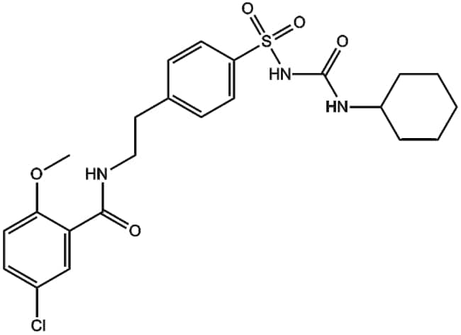Glibenclamide (CAS 10238-21-8) is a sulfonylurea-class small molecule widely utilized in biomedical research for its ability to modulate insulin release It acts primarily by binding to ATP-sensitive potassium channels (K ATP channels) in pancreatic beta cells This interaction results in channel closure leading to cellular depolarization calcium ion influx and subsequent insulin secretion Due to its well-characterized mechanism glibenclamide is particularly relevant in diabetes-related research focusing on insulin regulation and beta-cell physiology