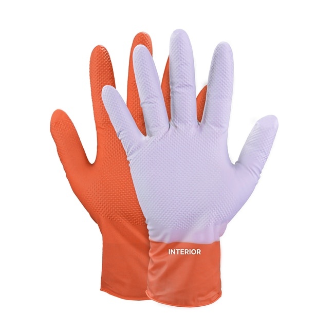 - Gloveworks Ultra™ Industrial Orange Flock-Lined Raised Diamond Texture Nitrile Disposable Gloves stand up to the toughest jobs.