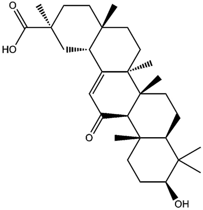 Glycyrrhetinic acid (CAS 1449-05-4) is a small-molecule inhibitor targeting 11 -hydroxysteroid dehydrogenase It is designed to modulate enzymatic activity thereby influencing corticosteroid metabolism and cortisol bioavailability Glycyrrhetinic acid exerts its biological activity primarily through inhibition of 11 -hydroxysteroid dehydrogenase Based on these pharmacological properties glycyrrhetinic acid holds research potential in anti-inflammatory antiviral and hepatoprotective applications