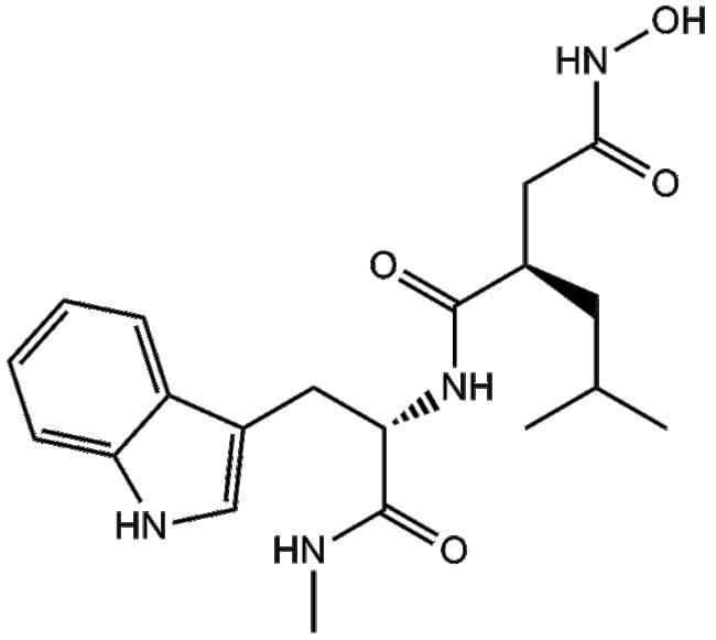 GM 6001 (Ilomastat Galardin CAS 142880-36-2) is a broad-spectrum inhibitor of matrix metalloproteinases (MMPs) including MMP-1 -2 -3 -8 and -9 with reported Ki values of 0 4 nM 0 5 nM 27 nM 0 1 nM and 0 2 nM respectively MMPs participate in extracellular matrix remodeling and mediate signaling events induced by GPCR agonists through EGFR transactivation GM 6001 suppresses EGFR phosphorylation ERK activation and subsequent DNA synthesis induced by stimuli such as bombesin and lysophosphatidic acid (LPA) Additionally this compound has potential applications in cartilage research facilitating meniscal repair under inflammatory conditions by dampening IL-1-mediated MMP activity