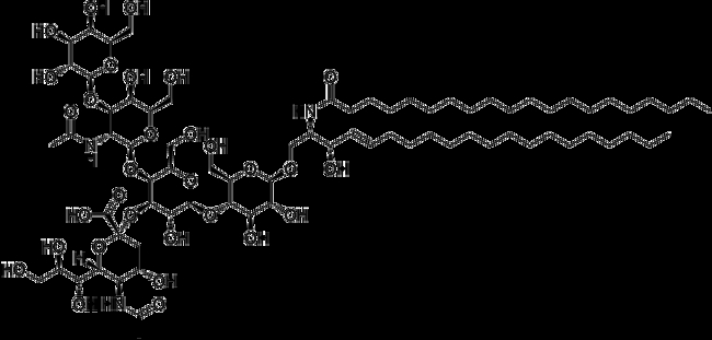 Chemical Formula: C73H131N3O31xNa, MW: 1546.82 (free acid basis), Synonyms: Gal(b1-3)GalNAc(b1-4)[Neu5Ac(a2-3)]Gal(b1-4)Glc(b1-1)Cers; Monosialoganglioside GM1; prototype ganglioside; monosialotetrahexosylganglioside.