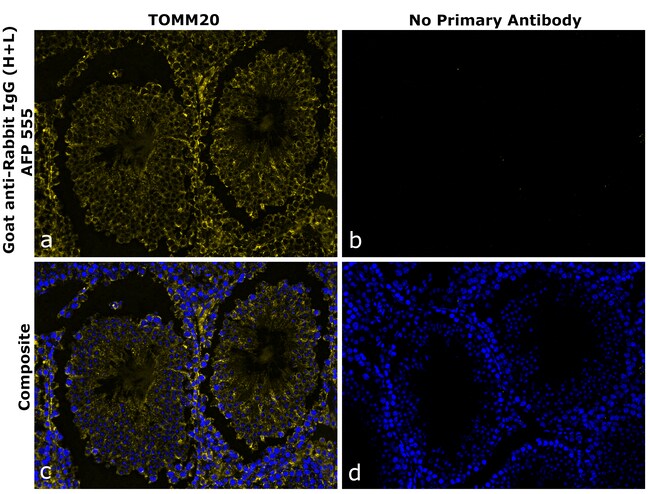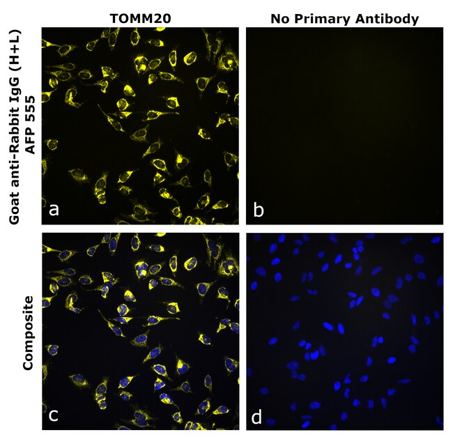 Goat anti-Rabbit IgG (H+L), Superclonal™ Recombinant Secondary Antibody, Alexa Fluor™ Plus 555 detects both Fc and Fab2 fragment of Rabbit IgG. It has <5% cross reactivity to Mouse IgG. It showed no cross-reactivity to various species immunoglobulins tested. Superclonal™ recombinant secondary antibodies are produced using a multifaceted clonal selection process that involves several phenotypic screens to ensure enhanced specificity, animal origin free formulation and lot-to-lot consistency. Alexa Fluor™ Plus dyes have been chemically optimized to provide higher signal to noise ratios and minimized cross-reactivity to help detect low-abundance targets in rare or precious samples. It is recommended that the antibody be carefully titrated for optimal performance in the assay of interest.