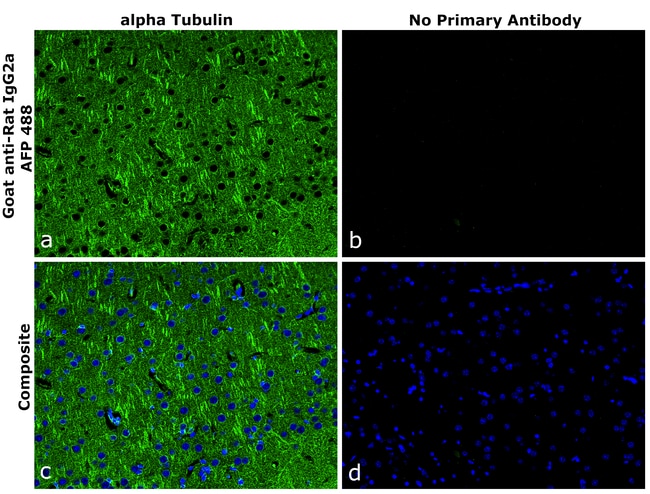 Goat anti-Rat IgG2a Recombinant Secondary Antibody specifically detects the Fc portion of rat IgG2a isotype and shows strong reactivity to total Rat IgG. It has minimal to no cross-reactivity towards other rat IgG isotypes and immunoglobulins tested from other species. Alexa Fluor™ Plus conjugated recombinant antibodies provide bright signals and high signal-to-noise for your critical experiments. It is recommended that the antibody is carefully titrated for optimal performance in the assay of interest. It is recommended that the antibody be carefully titrated for optimal performance in the assay of interest.
