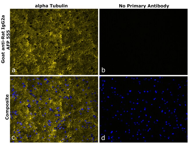 Goat anti-Rat IgG2a Recombinant Secondary Antibody, Alexa Fluor™ Plus 555 is specific to Rat IgG2a. It has = 5% cross reactivity to Mouse IgG and Rabbit IgG. It showed no cross-reactivity to various species immunoglobulins tested. Alexa Fluor™ Plus dyes have been chemically optimized to provide higher signal to noise ratios and minimized cross-reactivity to help detect low-abundance targets in rare or precious samples. It is recommended that the antibody be carefully titrated for optimal performance in the assay of interest.