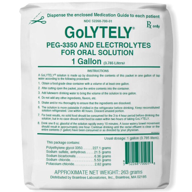 GoLYTELY is indicated for bowel cleansing prior to colonoscopy and barium enema X-ray examination. GoLYTELY is the original 4-liter GI lavage prep. GoLYTELY has proven safety in a wide range of patients, including diabetic, hypertensive, cardiac and renal patients as well as those with electrolyte imbalances.