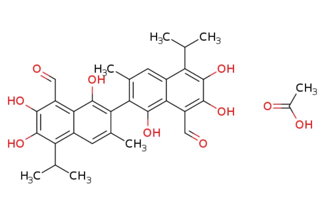 eMolecules (?)-Gossypol-acetic acid,crystalline complex consisting of equimolar quantities of gossypol and acet | 12542-36-8 | MFCD00058385 | 1g