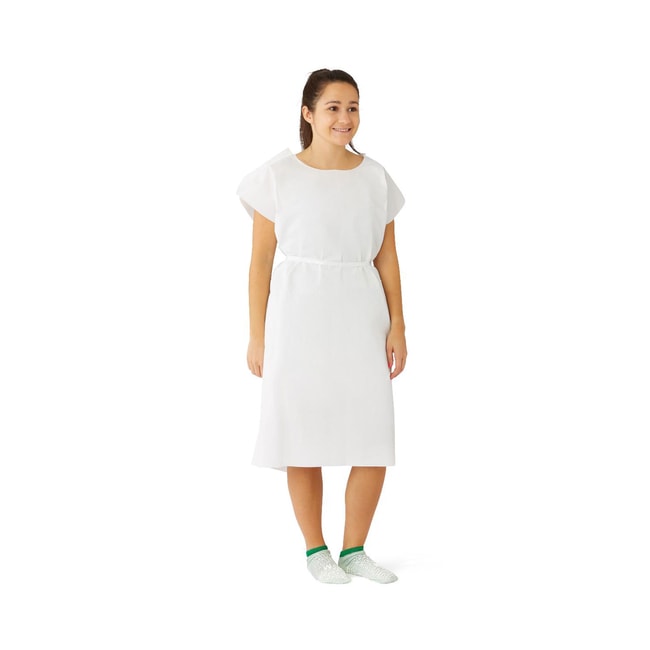 Deluxe Patient Gown: Give your patients the privacy they deserve in our Deluxe Patient Gown. Constructed with a tissue/poly/tissue material. Standard cut, 30' x 42'. White.Opening in front or in back Gowns have attached ties Tissue-Poly-Tissue 3-ply material Gowns are 30' x 42'