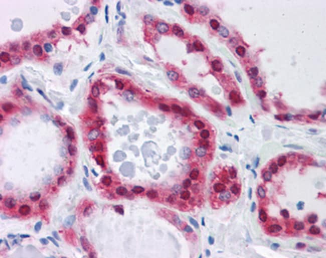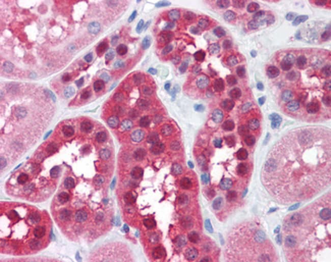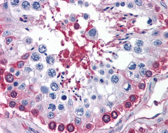 This antibody is predicted to react with porcine based on sequence homology. This antibody is tested in Peptide ELISA: antibody detection limit dilution 128,000.