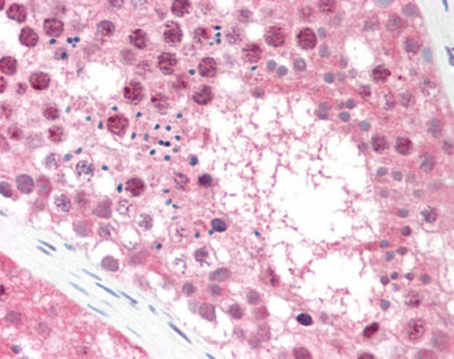 This antibody is predicted to react with bovine, canine, mouse and rat based on sequence homology. This antibody is tested in Peptide ELISA: antibody detection limit dilution 32,000.