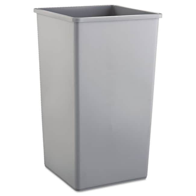 Untouchable large plastic square waste receptacle features a sleek design for a professional image that's ideal for centrally located collection areas. Patent-pending cinch keeps your can-liner in place, eliminating the need to resize the opening by tying a knot. Durable, crack-resistant shell holds up, even under tough indoor/outdoor conditions. Compatible with variety of swing-top lids -- sold separately.