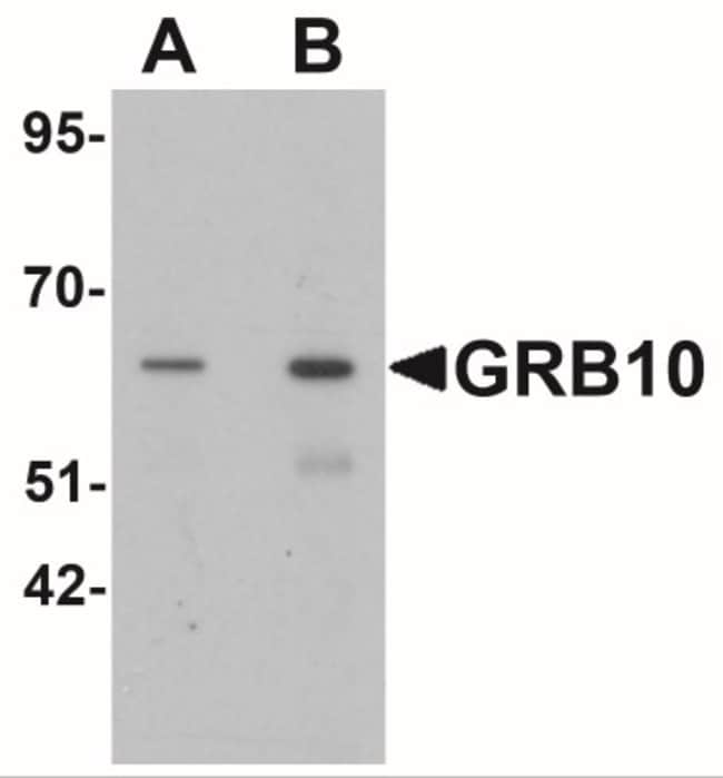 At least three isoforms of GRB10 are known to exist; this antibody will detect all three isoforms. |